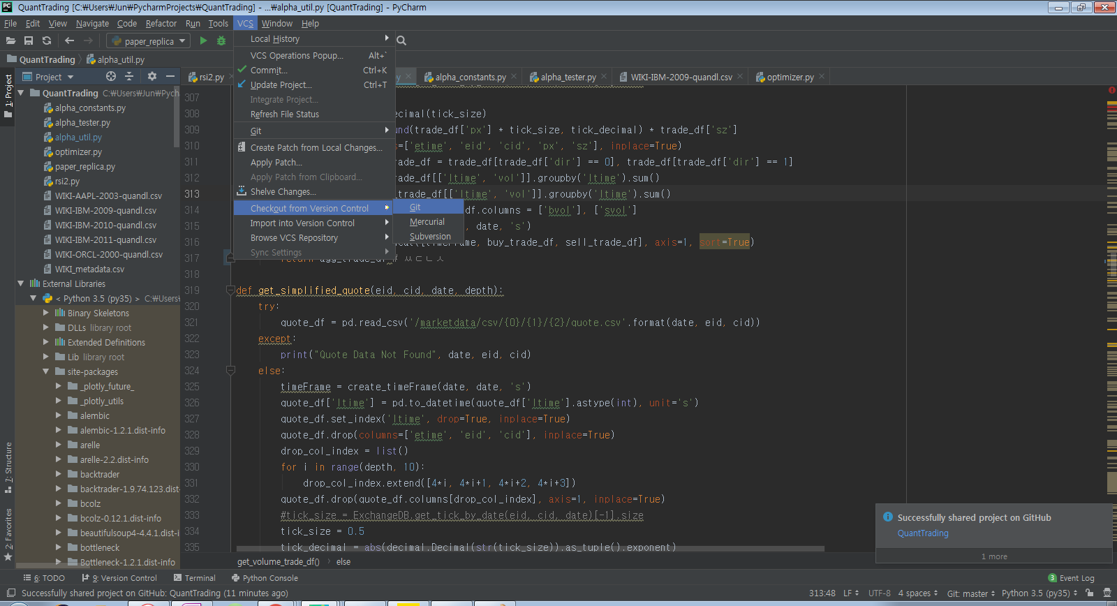 (4) Github 프로젝트가 내 local Pycharm Project로 생긴 것을 확인할 수 있습니다.