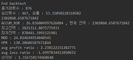 전략 자체를 수정한 것은 아니므로 승리횟수, 승률, 손익비는 변동이 없습니다.