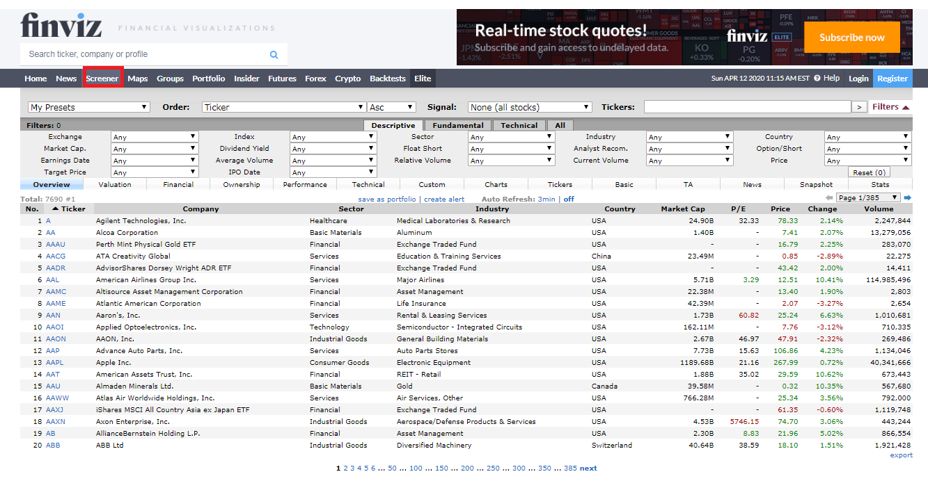 × Ever heard of Finviz*Elite? Our premium service offers you real-time quotes, advanced visualizations, technical studies, and much more. Become Elite and make informed financial decisions. Find out more --> Upgrade your FINVIZ experience Join thousands of