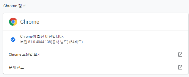 브라우저 창에 아래 주소 입력하면 바로 크롬 버전 확인 가능