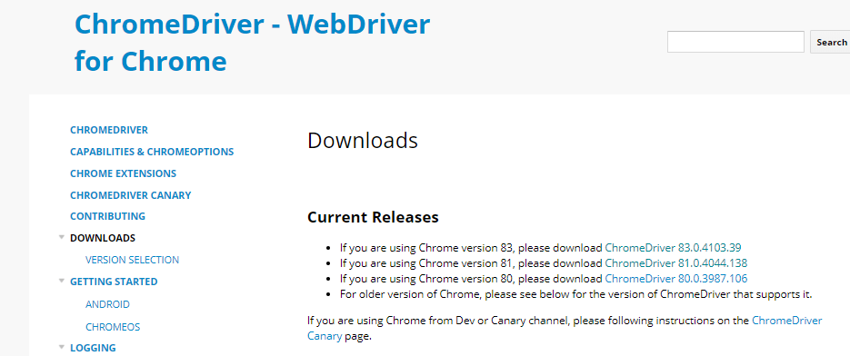 Downloads - ChromeDriver - WebDriver for Chrome