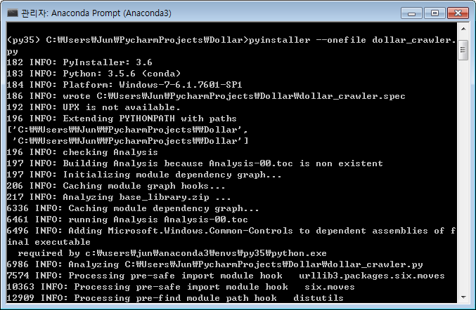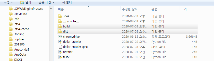 다만 --onefile 옵션을 넣지 않으면 필요한 모듈들을 따로 빼놓기 때문에 여러 파일들을 데리고 다녀야하는 불편함이 있을 수 있다.