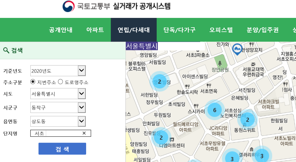 이제 여기서 내가 매매하려고 하는 빌라와 유사한 면적의 빌라들의 실거래를 조회해보자.