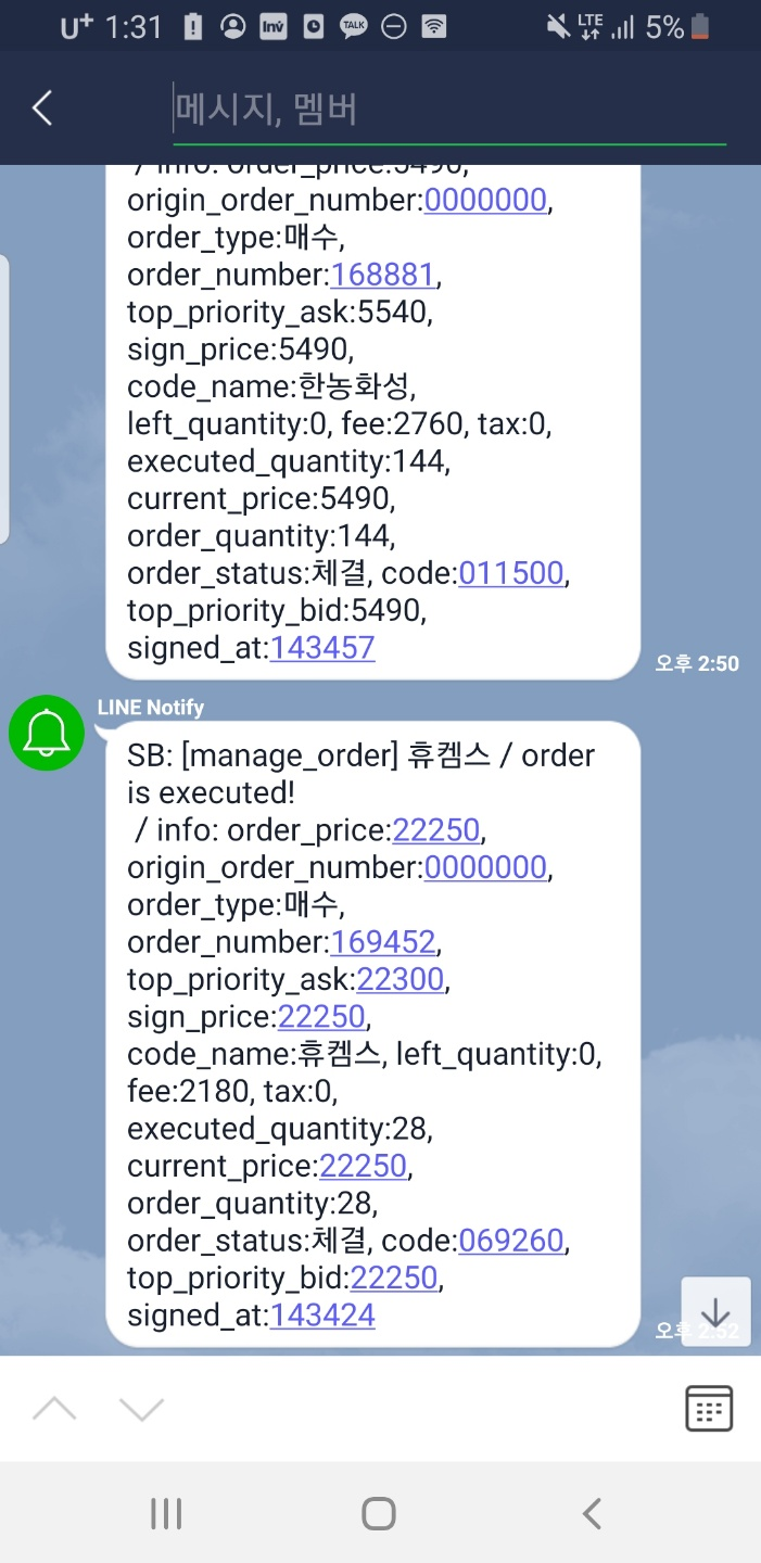 어제는 처음으로 매수 조건에 맞는 주식들을 매수했다는 알림을 받았다.
