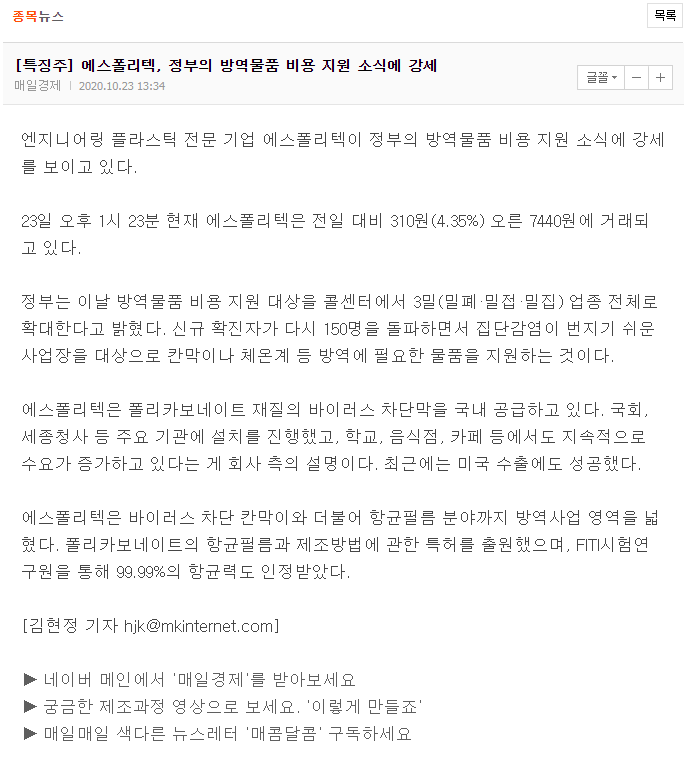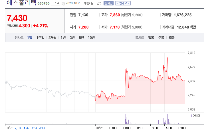 에스폴리텍은 약간 특징주로 꼽히기도 했는데