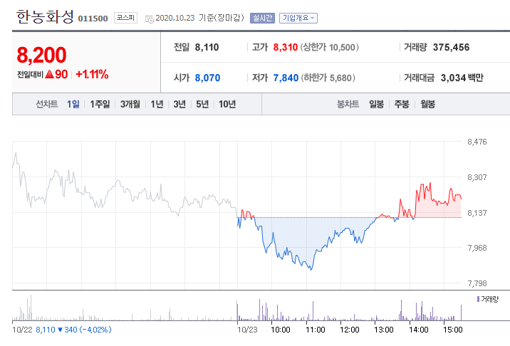 한농화성은 모의투자에서 한번 매매한 종목이므로 기억한다만