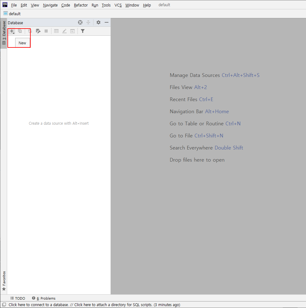 1. Datagrip 실행하고 Database View 클릭