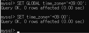 SET time_zone='+09:00'; 입력 후 엔터