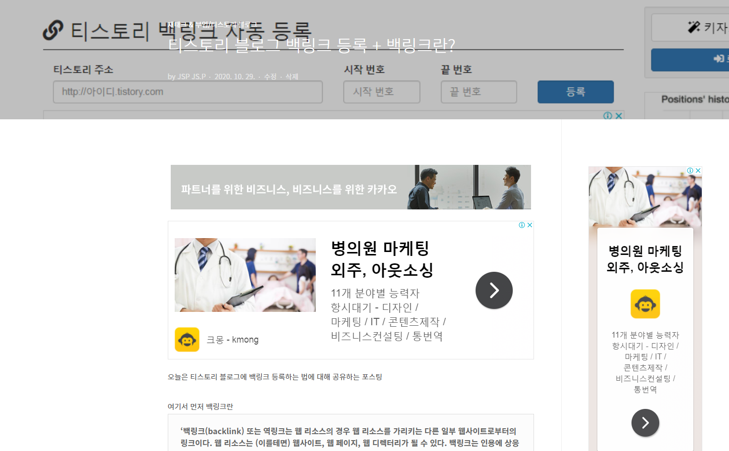 | 티스토리 블로그 백링크 등록 + 백링크란? (0) | 2020.10.29 |