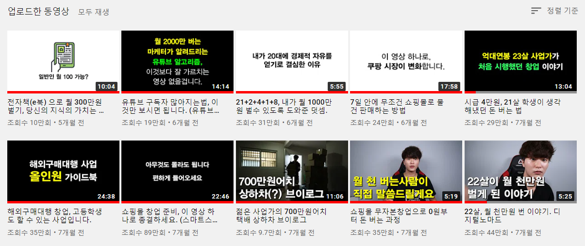 하지만 이미 레드오션이라고 하는 해외구매대행, 스마트스토어에 대한 정보, 인터뷰를 알려주는 채널은 정말로 많았고 앞으로도 많을 것 같다. 그럼에도 그의 채널이 인기 있는 비결을 생각해보면