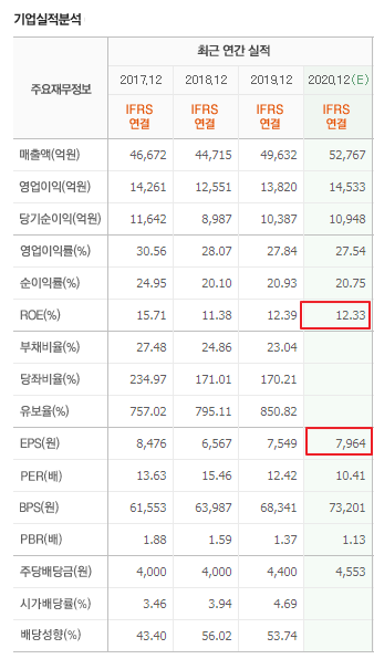 이 공식을 따라 KT&G의 올해말 예상치 기준으로 적정주가를 계산해보면
