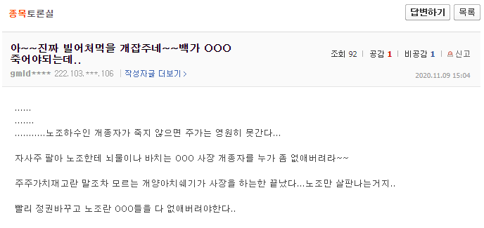 그리고 종토방 반응.