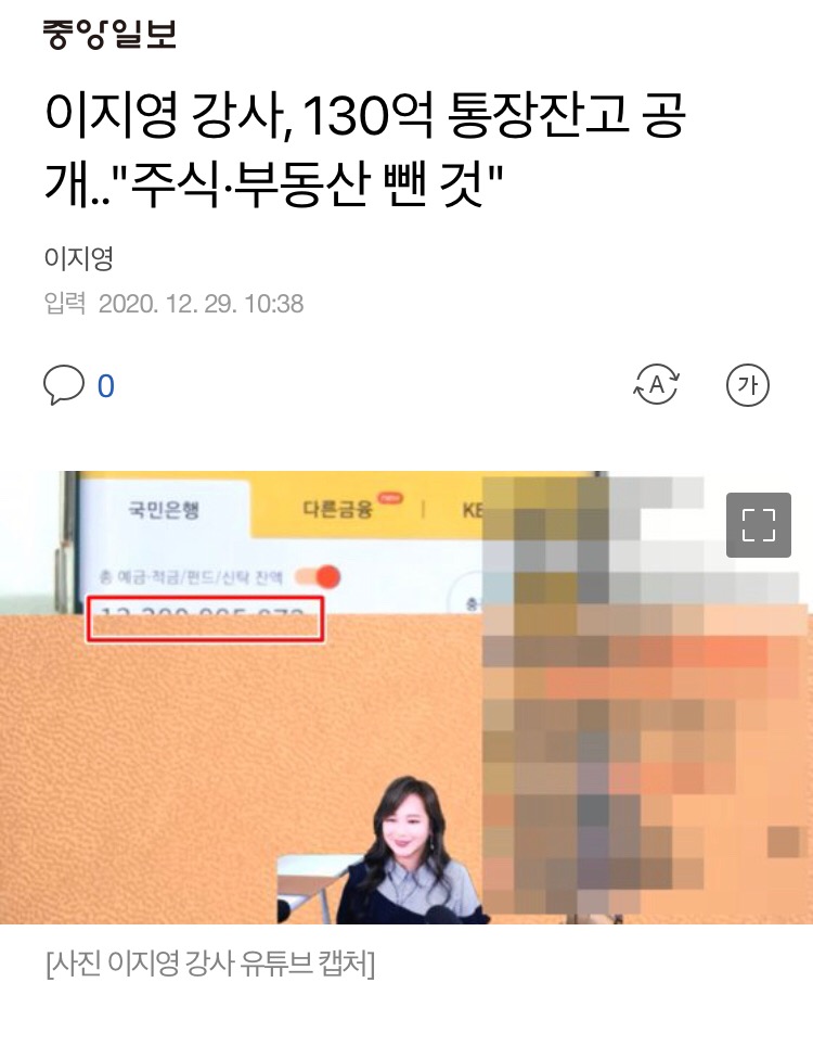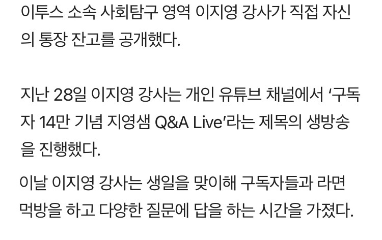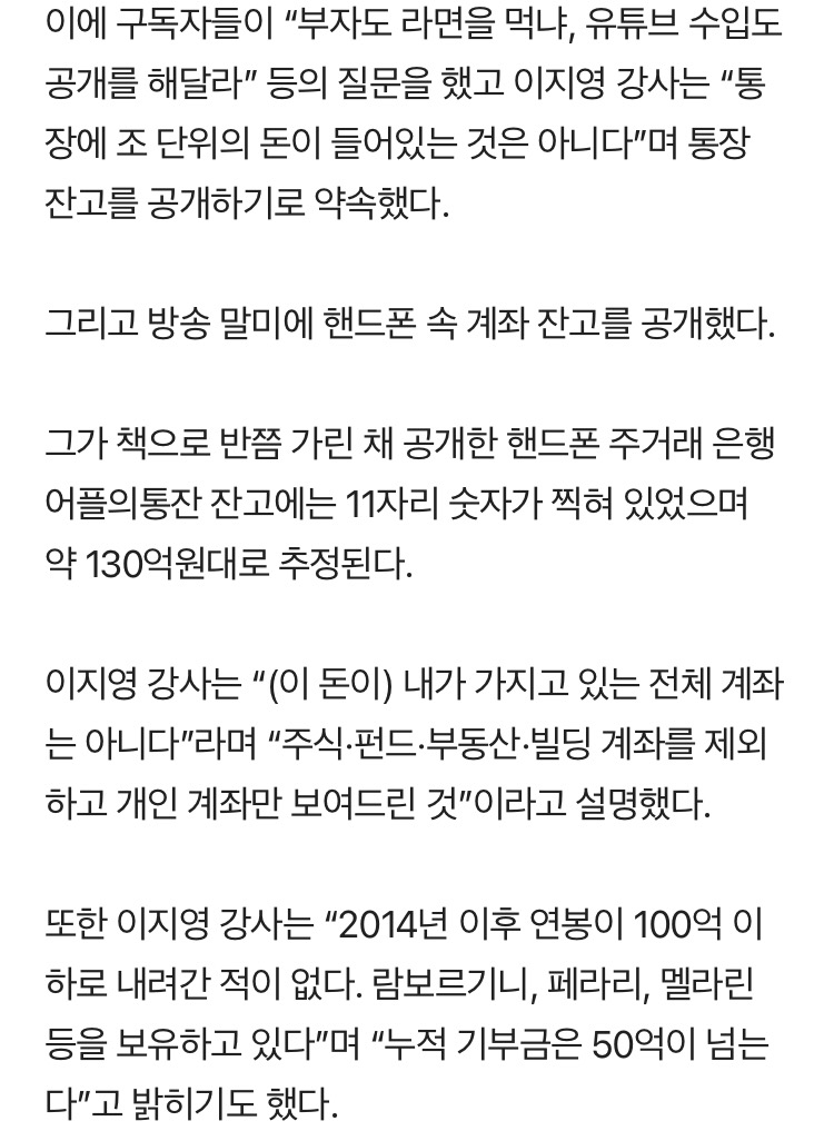 아무튼 서울대 출신의 강사님의 통찰 있는 말이었는데 최근 방송중에 통장공개를 하셨다.