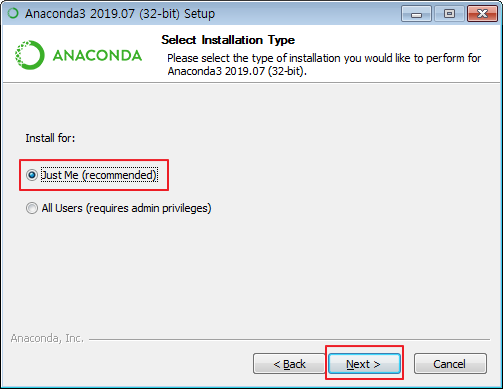 그 때 잠깐 멈추고 Anaconda를 설치하자니 혼동이 생기실 수 있을 것 같아서 그전에 차라리 Anaconda부터 설치하겠다는 의도입니다. 사실 설치 순서는 크게 상관이 없습니다.