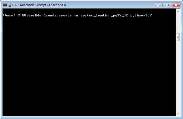 Python 3.7버전의 system_trading_py37_32라는 이름의 가상환경을 만듭니다.