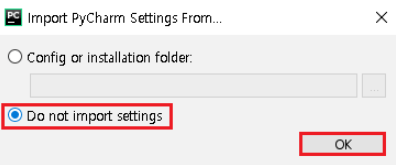 Pycharm을 원래 사용하던 유저라면 기존에 사용하던 설정 세팅을 불러올 것인지 물어봅니다.