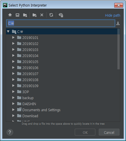여기서 빨간색 표시한 부분이 python.exe로 잘 선택되었는지 확인한 다음 Ok를 누릅니다.