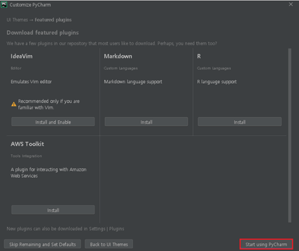 해당되지 않으니 Start using Pycharm을 선택합니다.