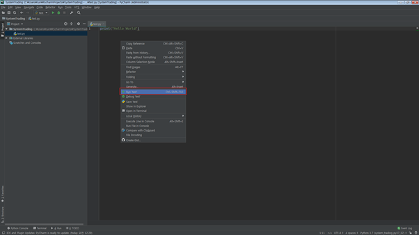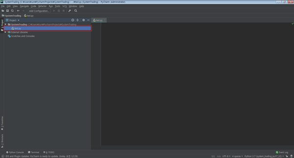 앞에서 생성한 Pycharm 프로젝트 화면으로 가보겠습니다.