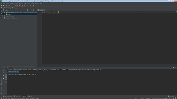 이로써 우리는 Pycharm을 이용해 Hello World라는 문자를 출력하는 코드를 만들어 봤습니다. 여기서 알 수 있는 사실은 다음과 같습니다.