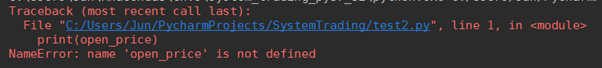 아래 초록색 영역을 보면 open_price가 정의되어 있지 않아서 에러가 났다고 합니다. 하네요.