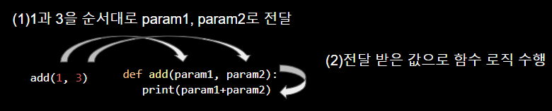 실행하면 add(1, 3)을 통해 호출하면 함수를 정의할 때 사용한 param1 자리에는 1이 전달되고