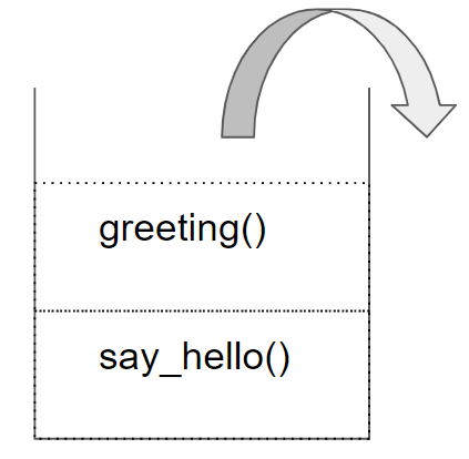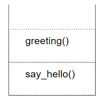 say_hello가 실행되며 greeing 함수를 호출하기에 다음과 같은 구조가 됩니다.