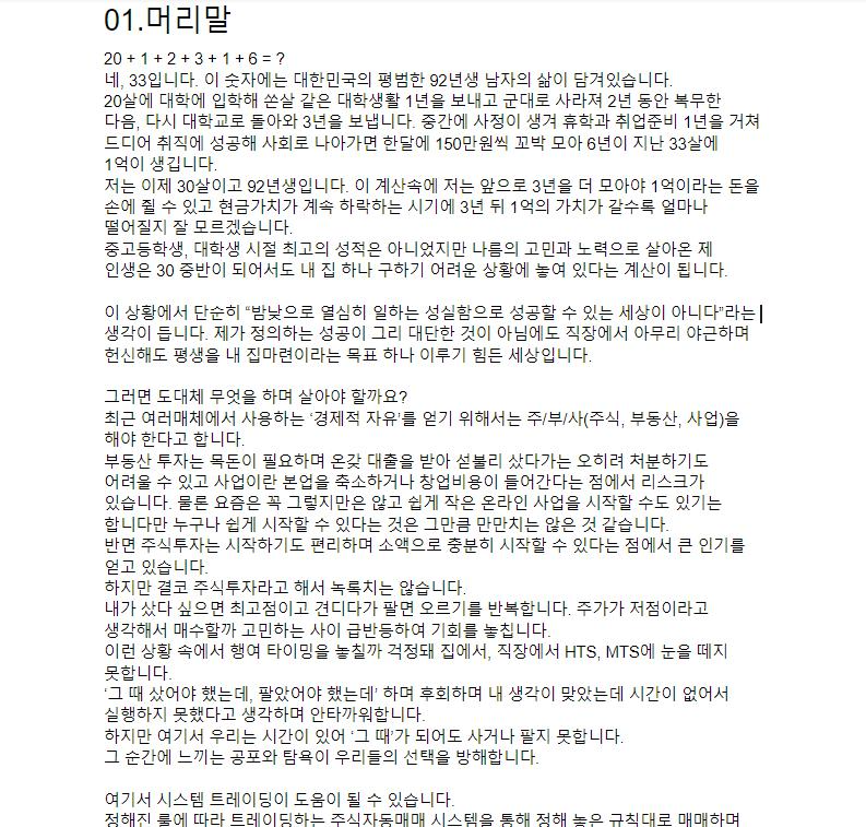 "책의 내용을 미리 보여드리자면 이렇습니다"