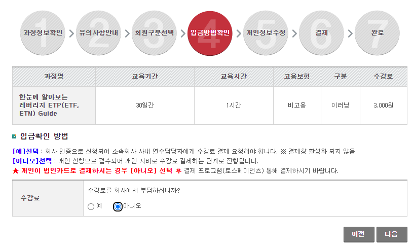 7. 결제 , 카드 선택해서 결제합니다. (수강료는 3천원입니다.)
