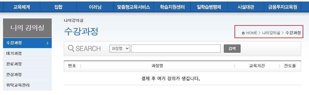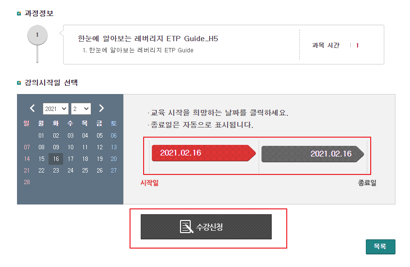 5.하단에 강의 시작/종료일 선택 후 수강신청 버튼 클릭