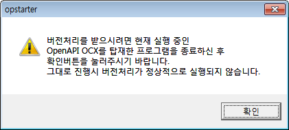확인을 누르고 다시 KOA를 실행합니다.