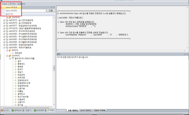 KOA Studio는 API 사용 설명 및 API 호출을 해볼 수 있는 프로그램이라고 설명 드렸습니다. API를 이용한 시스템 트레이딩 개발 과정에서 KOA Studio를 사용할 일이 분명 있을 수 있기 때문에 사용 방법에 대해서 짚고 넘어가도록 하겠습니다.
