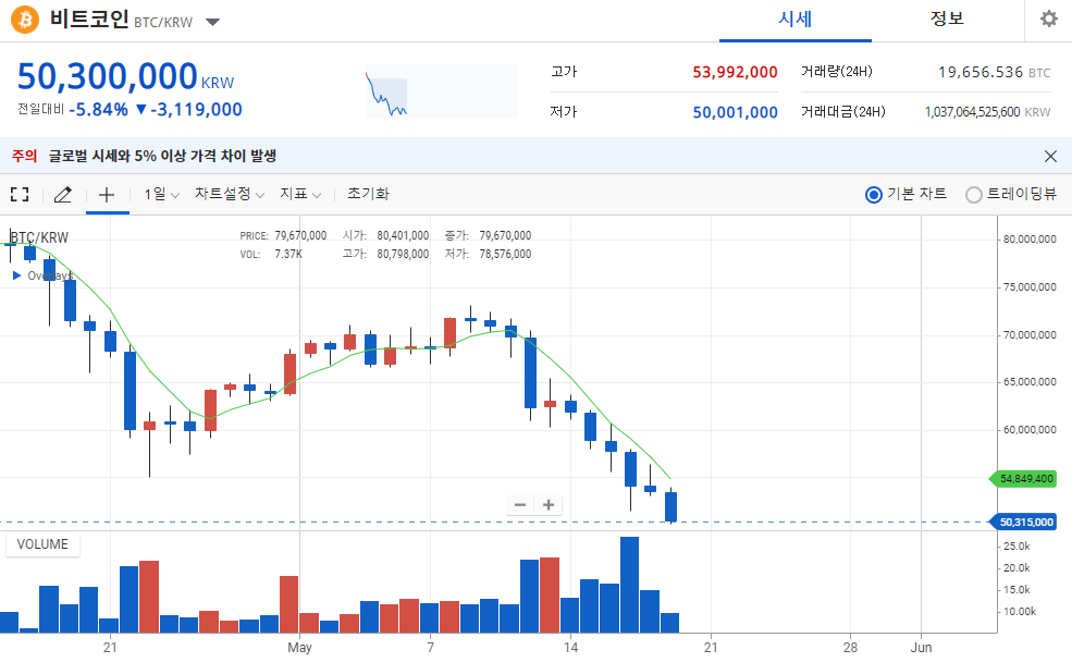 같은 코인인데 두 코인 가격 약 8배 차이...