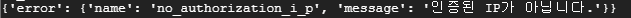 이렇게 허용 IP를 설정해주면 허용되지 않은 IP에서 API를 이용이 불가합니다.