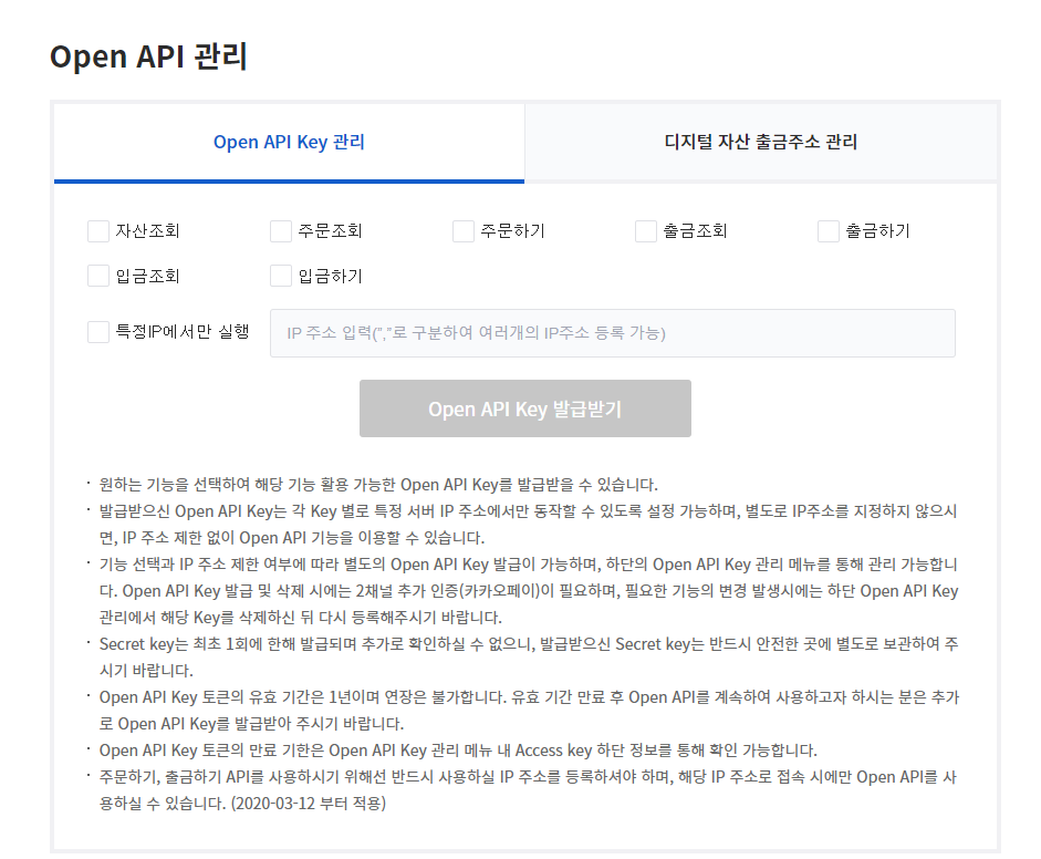 가상화폐거래소 업비트 Open API Key 발급 받는법