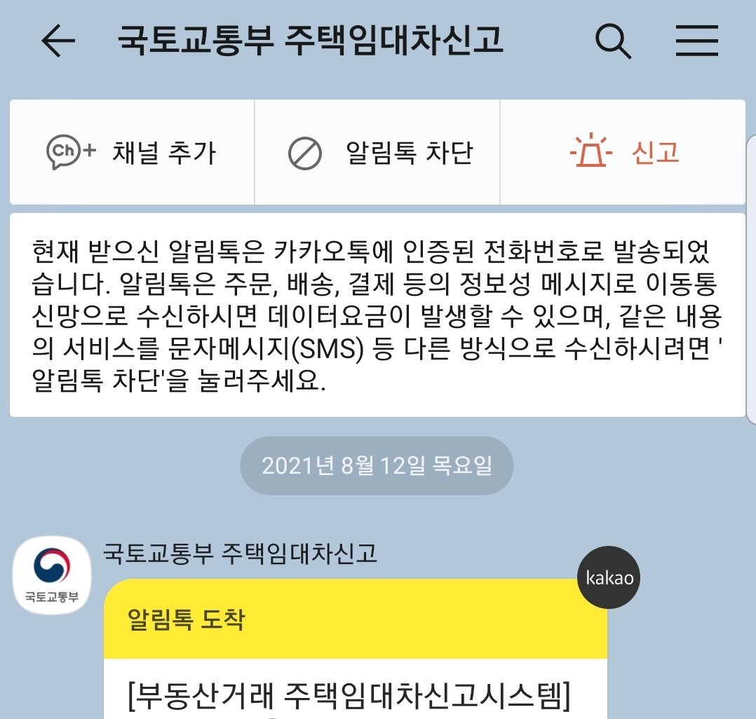 저는 밤에 온라인으로 신고를 마치니 다음날 알림톡이 왔습니다.