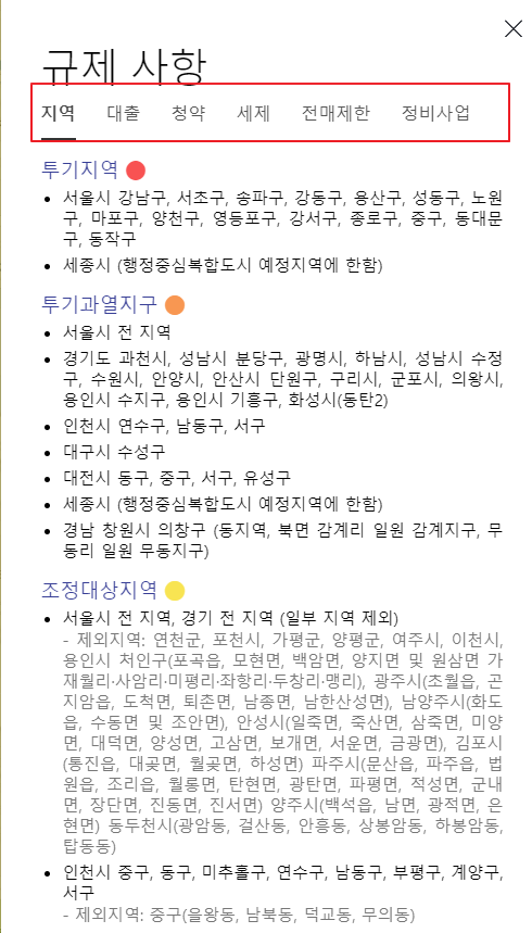 오늘은 지역별로 규제지역여부를 확인해 대출, 청약, 세금규정 등 헷갈리는 정보들을 알아보는 방법에 대해서 소개하겠습니다.