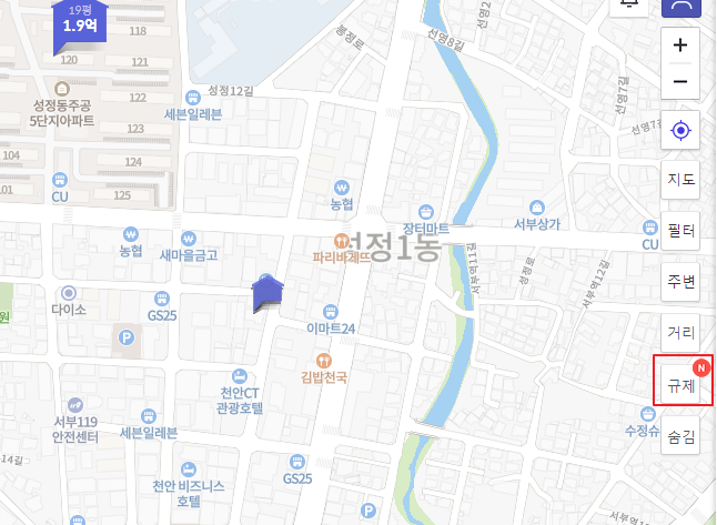 이 지역별로 다른 규제사항은 호갱노노에서 확인하는 방법을 소개하도록 하겠습니다.