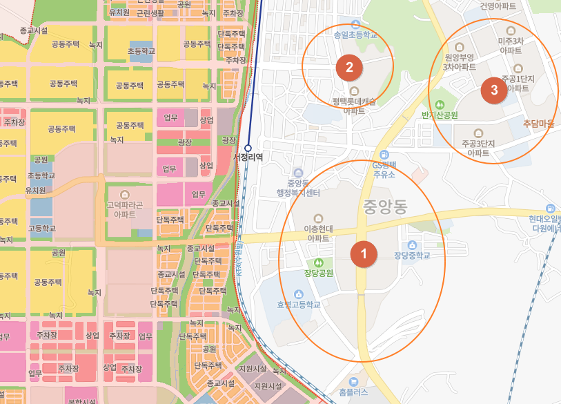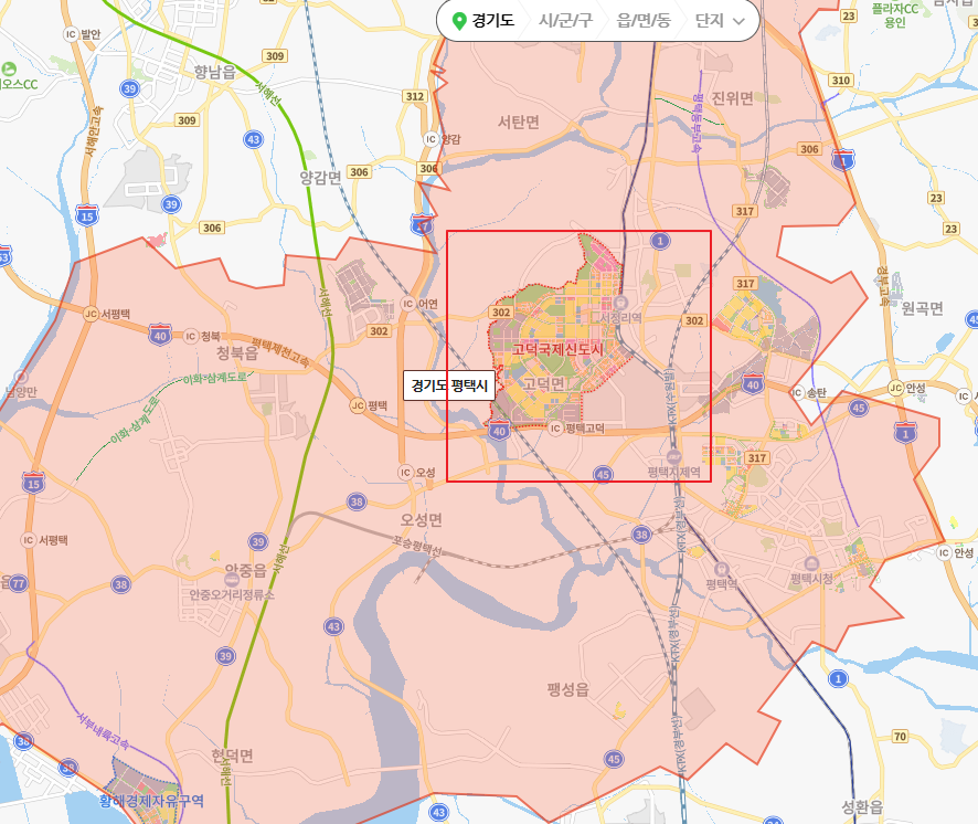 삼성반도체 공장을 끼고 있는 고덕국제신도시와 가까운 서정리, 지제 더 넓게는 평택역 인근까지 수혜지역으로 생각할 수 있습니다.
