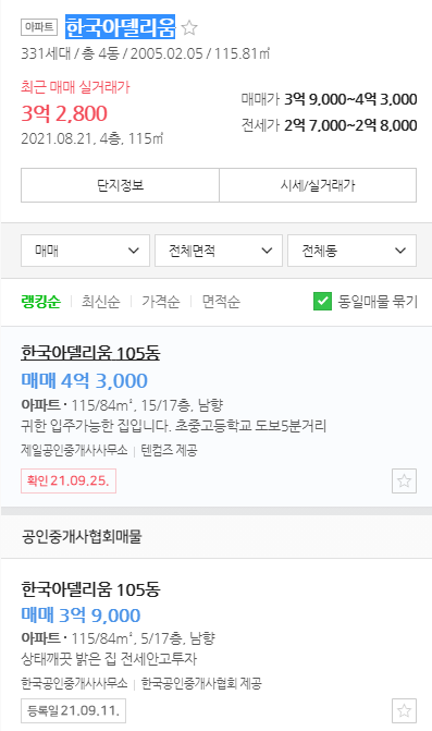 위 시세는 현재 9월 기준이지만 이미 제가 알아보던 6월달에도 매매가가 너무 높은 상황이었습니다.