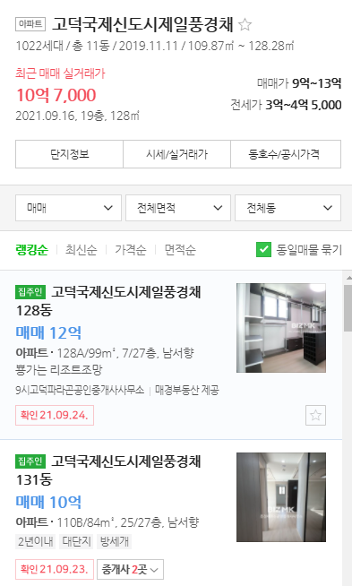 특히 고덕국제신도시는 이미 10억을 넘어버릴 정도로 인기와 전망이 좋습니다.