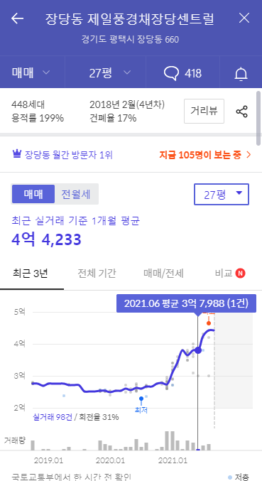 특히 그중에서도 1번, 장당동에 위치한 신축인 제일풍경채장당센트럴의 상승세가 무서웠습니다.