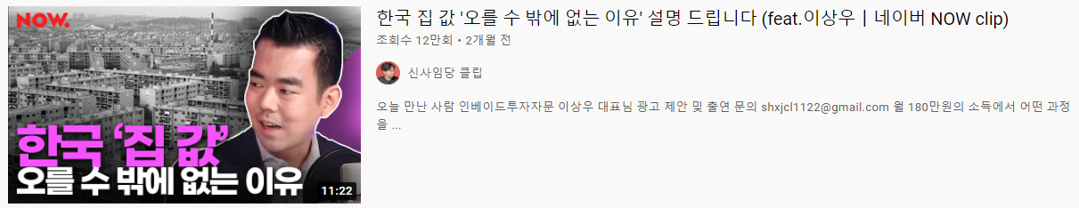 최근에는 한국 '집 값' 오를 수 밖에 없는 이유로 신사임당님 채널에 출연하셨으니 시청하시는 것도 추천 드립니다.