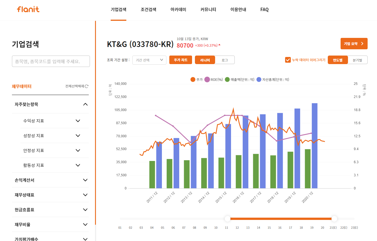 이 사이트의 장점은 가장 직관적이고 효율적으로 다음처럼 재무데이터를 볼 수 있습니다.