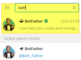 1)텔레그램 내 대화창 검색에 bot이라고 검색합니다.