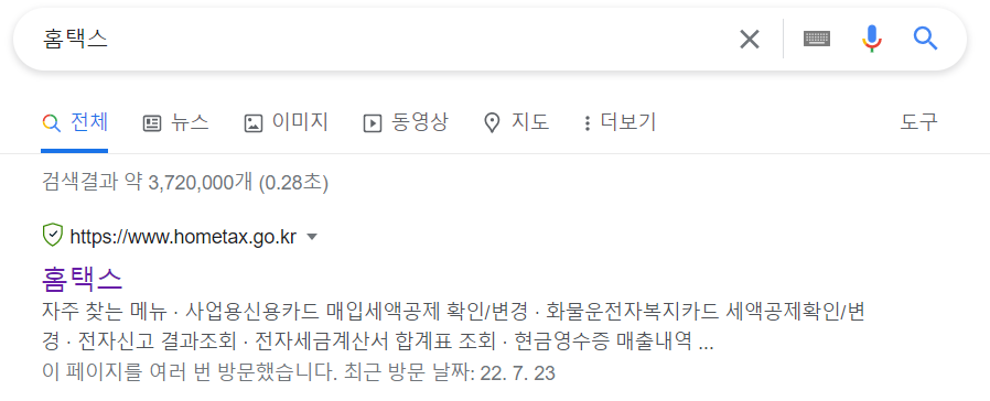 1.홈택스 접속합니다.