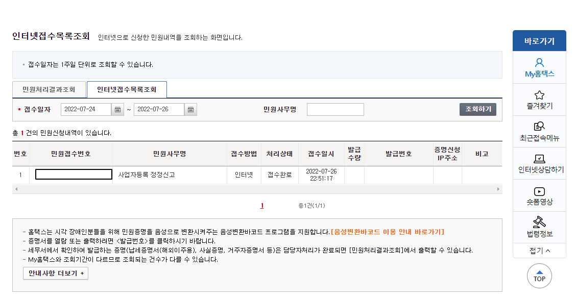 끝났습니다! 접수 후 처리까지 소요시간은 2~3일 정도 걸린다고 하네요.