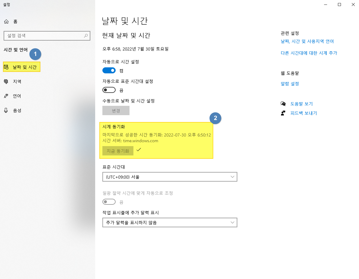 3.날짜 및 시간 > 지금 동기화 클릭
