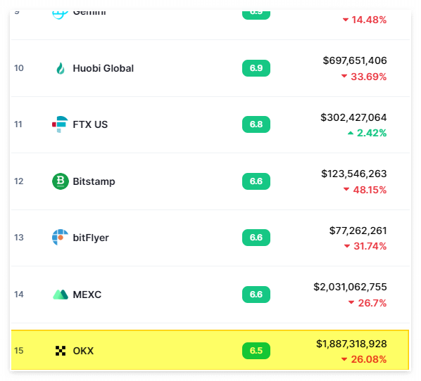 코인마켓캡 기준 거래소 순위는 15위입니다.