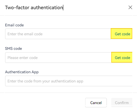 마지막으로 보안인증을 합니다. 이메일, SMS 그리고 google authentication app 번호를 입력하면 됩니다.